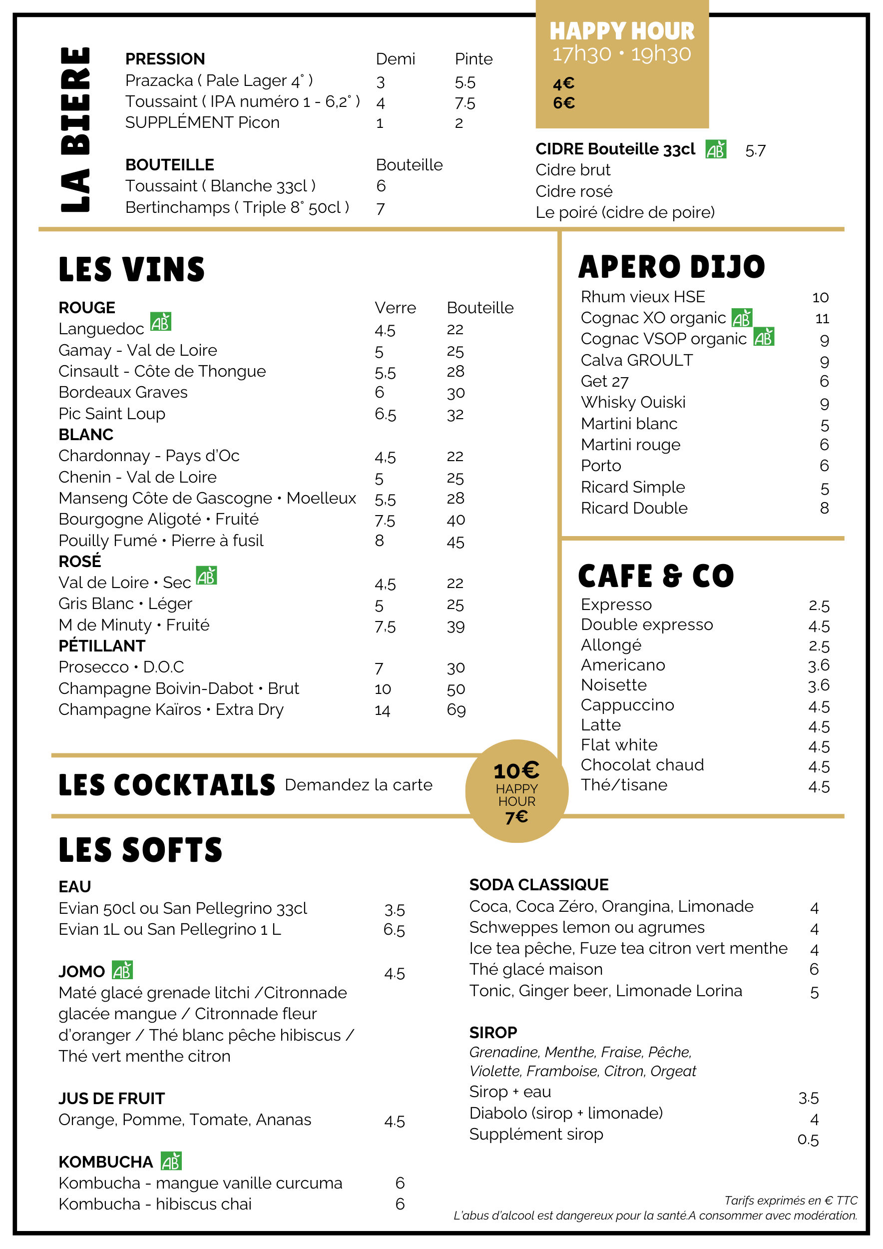 Un menu composé de plats simples et authentiques réalisés avec des produits sélectionnés avec soins, frais et de saison